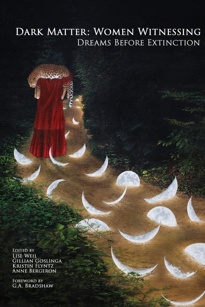 “Dark energy, dark matter, we don’t know what it is, no one does, but we know it is comprised of essays, poems, artwork, dreams, visions, activism, and communications with the nonhuman world responding to the many forms of devastation we face in these times. . . brought . . . to life exactly when the luminosity of Dark Matter is needed.” ~ Deena Metzger, author of Entering the Ghost River, Feral, Writing for Your Life, and more.